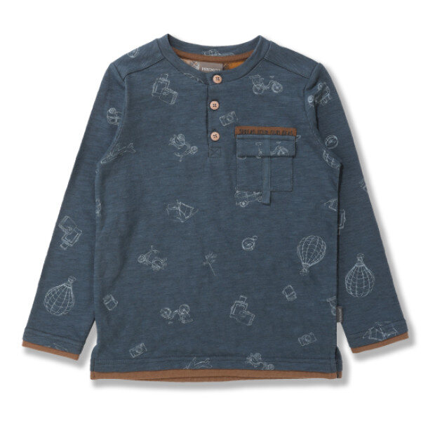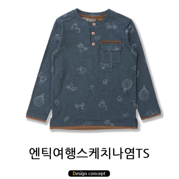 여행패턴이 들어간 Teal칼라와 체크 배색과의 조화가 고급진 티셔츠입니다.