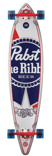 - Feature : Complete pintail longboard features Pabst Blue Ribbon graphics / 9-ply deck measures 9.9 by 43.5 inches (WxL) / 31.619-inch wheelbase; 2.343-inch nose; 5.3791-inch tail / 68-millimeter Road Rider "Eights" wheels; B180 Bullet Cutback trucks / Inlaid bottle opener; metallic ink