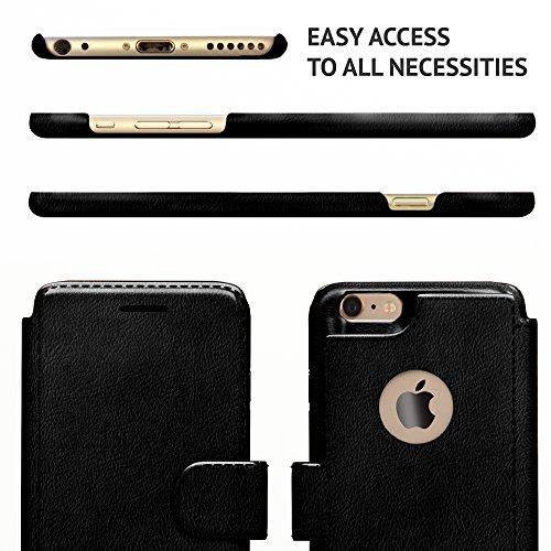 iPhone 6, 6s Wallet Case | Durable and Slim | Lightweight with Classic Design & Ultra-Strong Magnetic Closure | Faux Leather |Black |Apple 6/6s (4.7 in)