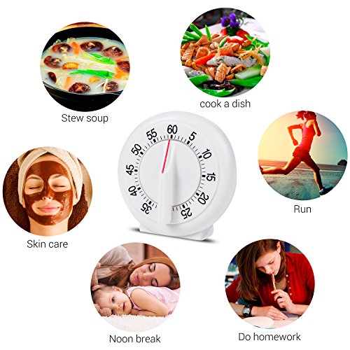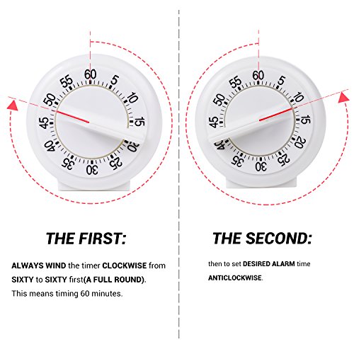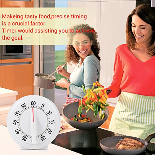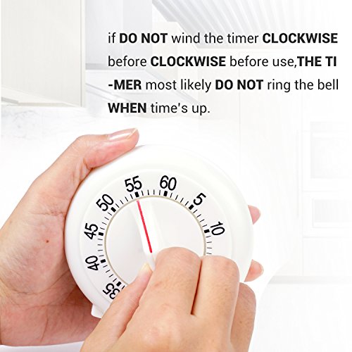 Round Shape Kitchen Timer Manual Mechanical Loud Alarm Sound Magnetic White Countdown Timer for Home Baking Cooking Steaming 60 Minutes