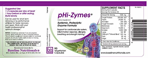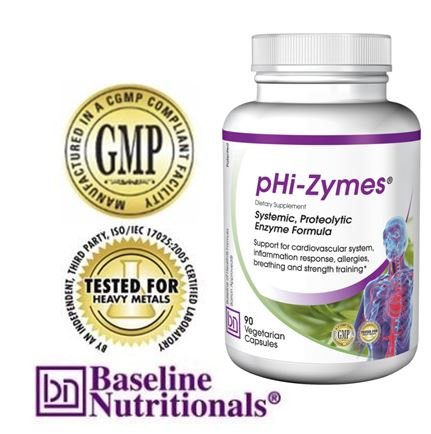 -. Binding : Health and Beauty -. Brand : Baseline Nutritionals Health Products -. EAN : 0895157000139 -. Feature : World's most powerful systemic proteolytic enzyme formula to help reduce inflammation / Helps your body clean out and repair the cardiovascular system for health or athletic performance / Reduces Circulating Immune Complexes that can lead to allergies and systemic inflammation / Optimizes the quality of blood & helps with factors that can cause autoimmune disorders / Patented -. IsAdultProduct : 0 -. Label : Baseline Nutritionals -. LegalDisclaimer : Neither the ingredients nor the product discussed on this page are intended to diagnose, treat, cure, or prevent any disease. -. Manufacturer : Baseline Nutritionals -. PackageQuantity : 1 -. ProductGroup : Health and Beauty -. ProductTypeName : HEALTH_PERSONAL_CARE -. Publisher : Baseline Nutritionals -. Studio : Baseline Nutritionals -. Title : pHi-Zymes (Systemic Proteolytic Enzymes) 90 count for Inflammation Support, Cardiovascular Health -. UPC : 895157000139