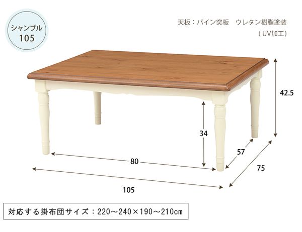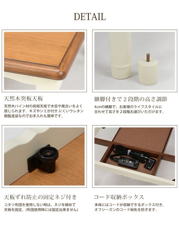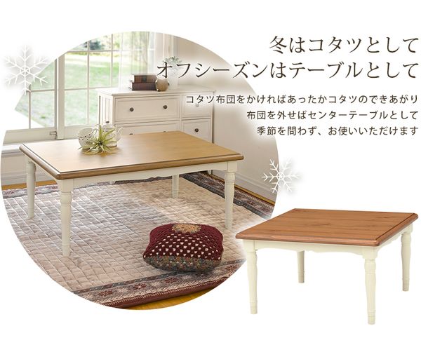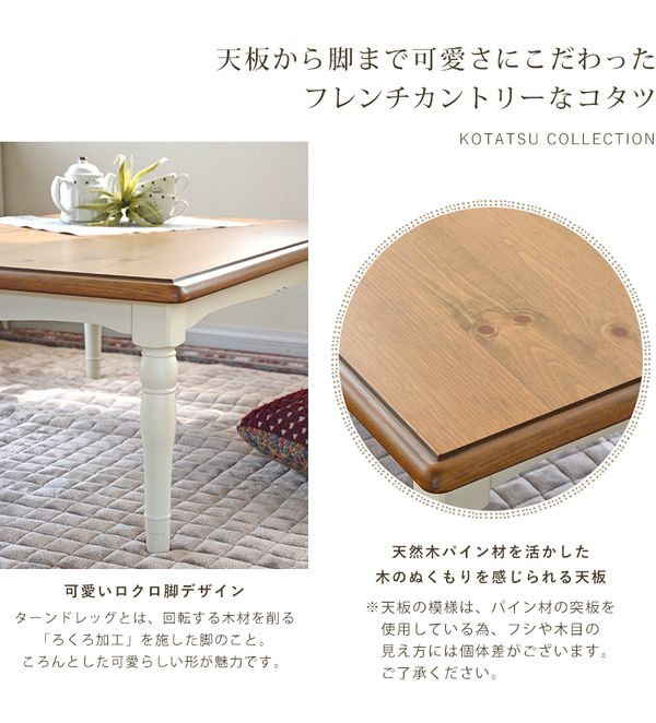 ●天板から脚まで可愛さにこだわったフレンチカントリーなこたつテーブル。
