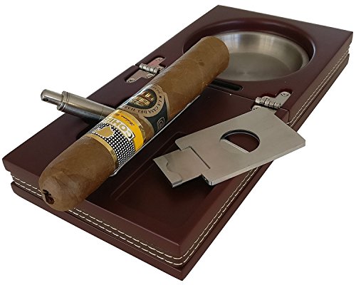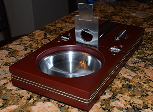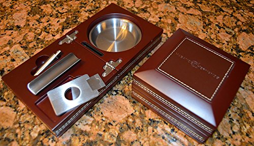 Habanos & Hermanos- Extravaganza Collection - The Compact Cigar Ashtray with Cigar Cutter and Punch. (Leather)