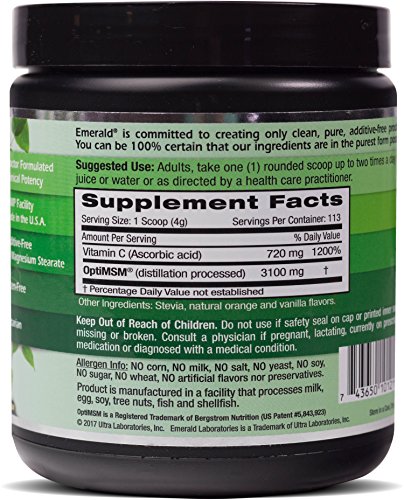 -. Title : MSM Powder - Joint Support for Aches & Pains, Anti-Inflammatory, Stress Relief, Supports Digestive System, & Allergy Relief - Vanilla Orange Flavor - Emerald Laboratories (Ultra Botanicals) - 16 oz