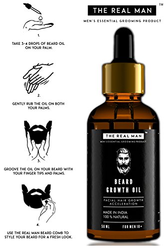 Beard Growth Oil by THE REAL MAN. Men's Mustache & Beard Growth Oil,100% Natural & Organic, Conditioner & Softener for Men,50ml(1.69oz)....