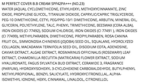 M PERFECT COVER BB CREAM 50ml BB Cream with outstanding coverage hides flaws for a perfect complexion Wrinkle Care, Brightening, UVA & UVB ProtectionDirections: After basic skin care, apply an appropriate amount along the skin texture and finish with powder. Do not need to apply additional sun cream.Feature