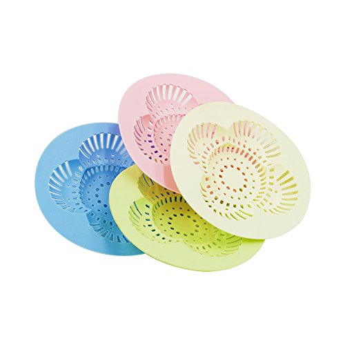 Amazlife 4 Colors PVC Flower Shaped Drain protector,Hair Catcher (Pink)