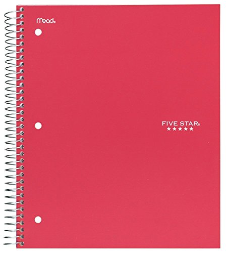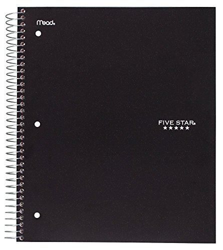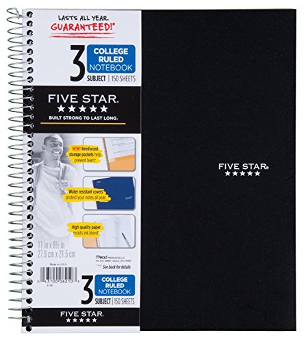 Five Star Spiral Notebook, 3 Subject, College Ruled, 150 Sheets, Black, Cobalt Blue, Red, 3 PACK (73393)