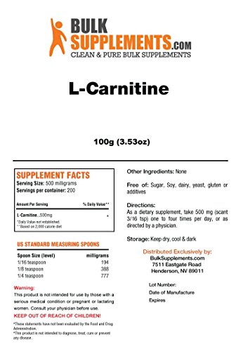 BulkSupplements Pure L-Carnitine Powder (100 grams)