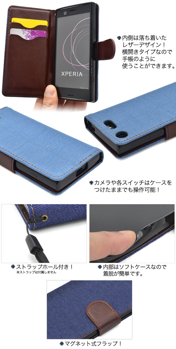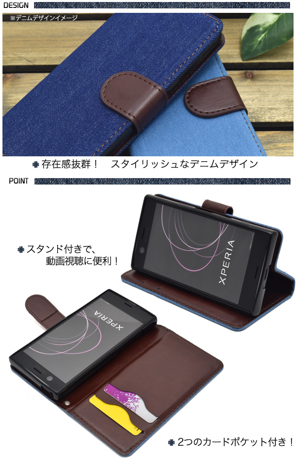 Xperia XZ1 Compact SO-02K用デニムデザイン手帳型ケース