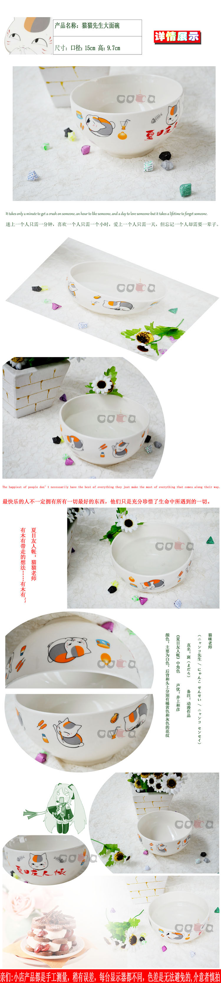 夏目友人 帐猫咪先生不烫手大面碗陶瓷碗汤碗泡面碗大碗 动漫周边
