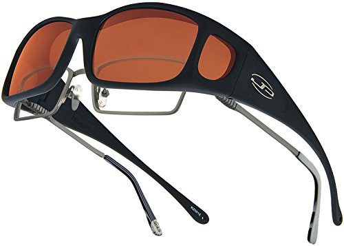 Fitovers Eyewear, are the world’s finest sunglasses specifically designed to be worn over prescription eyewear. The complete wrap around design is ideal for any outdoor activities, where annoying glare from the sun causes eye strain and discomfort. The Razor Matte Black style features Polarvue Gray lenses that block 99.9% of all reflected glare while allowing 15.5% of visible light to pass through the lens to your eye. Polarvue Gray lenses have a medium to dark tint that allows colors to be seen in their most natural state. In addition Polarvue Gray lenses undergo multiple manufacturing processes and treatment to ensure the highest and long lasting durability. The impact-resistant lenses meet ANSI-Z80.3 safety standards. [Fits over wide frames with small lenses not exceeding: 133mm X 40mm or 5 1/8" x 1 9/16"] Please see the Fitovers size guide for all styles and fits.Feature