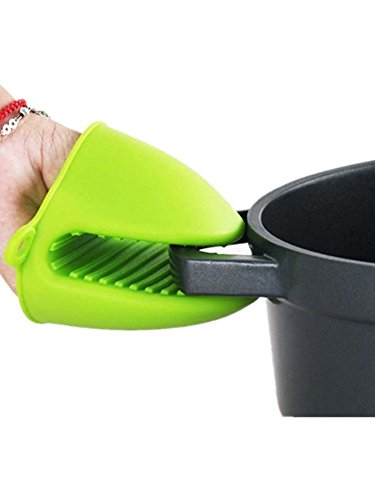 2pcs Silicone Hot Pads and Oven Mini Mitt, Kitchen Heat Resistant Gloves, Non-slip Pot Holder, Cooking Baking Pinch Grips, Set of 2 (Green)