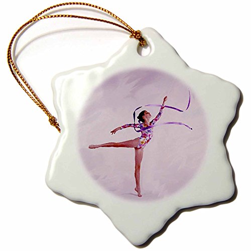 3drose Gymnastic Exercise Snowflake Porcelain Ornament, 3-Inch