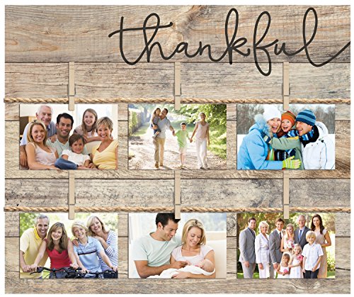 Thankful Script Design 18 x 21 Inch Solid Pine Wood Clothesline Clipboard Photo and Momento Display