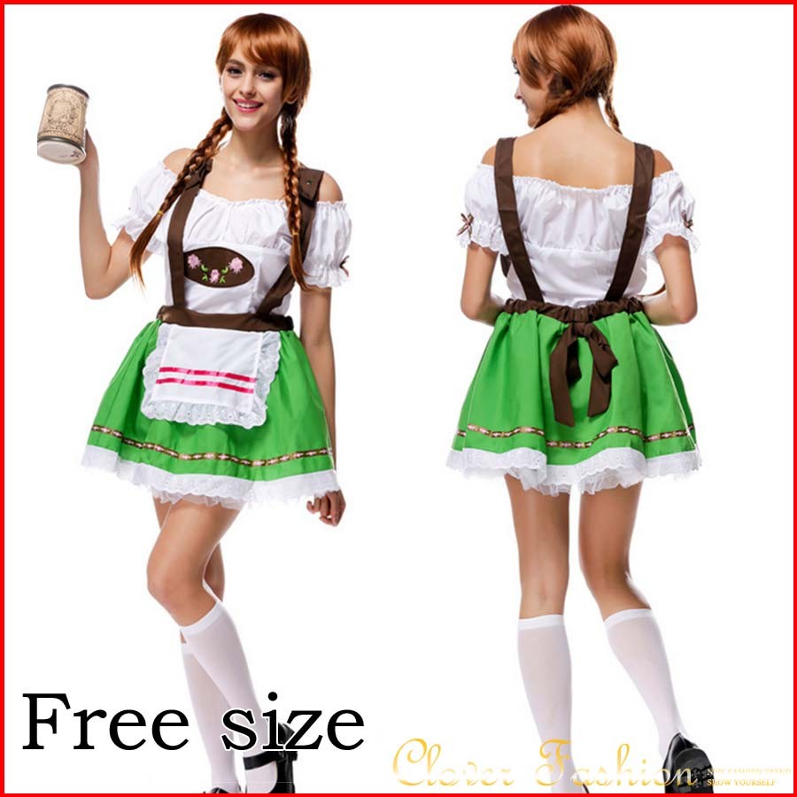 ハロウィン 送料無料 2016新作 バイエルン地方 ドイツ ビアガーデン メイド 大人用 衣装 民族衣装 ハロウィン ビールガール フェスト ドイツ ビアバー ビアガーデン メイド ミニドレス コスチューム 大人用 女性用 ハロウィン コスプレ 衣装 メイドコスプレ 緑 ミドリ