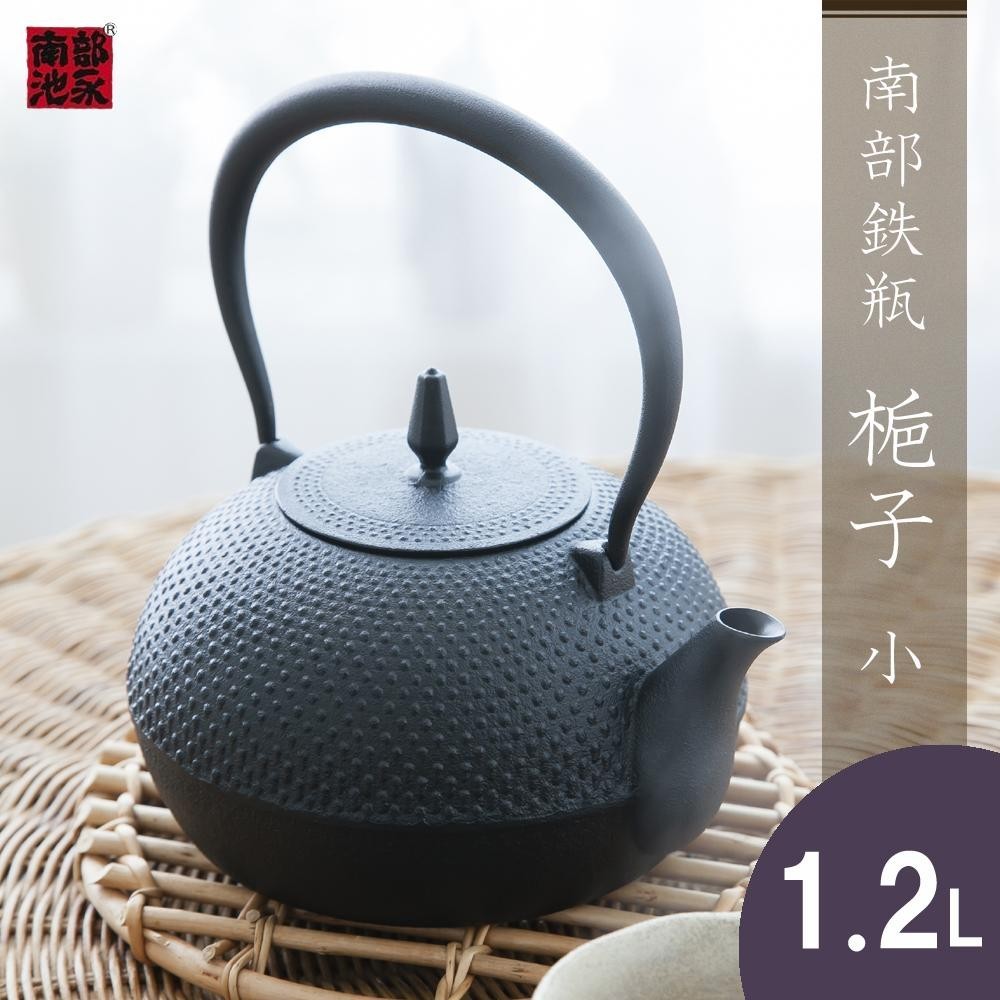| 伝統的なアラレ文様の南部鉄瓶「梔子」。 |