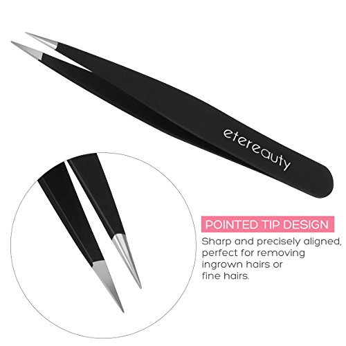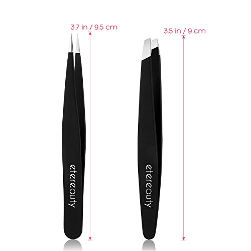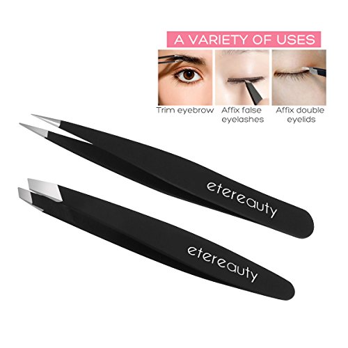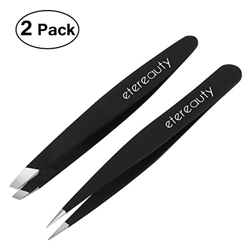 Tweezers for Ingrown Hair, ETEREAUTY Precision Slant Tweezers and Pointed Eyebrows Tweezer Set Stainless Steel Eyebrow Plucking 2 Pieces