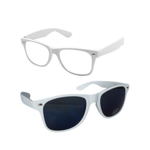 | 2 Retro Style White Frame Clear and Dark Lenses Sunglasses |