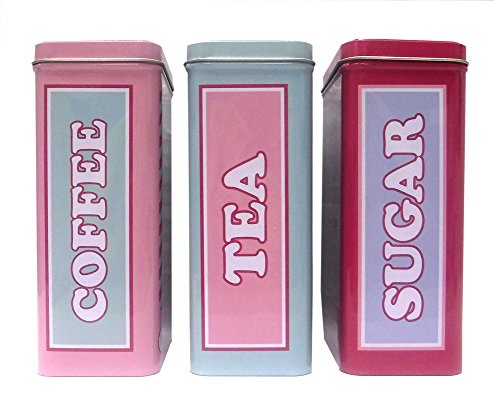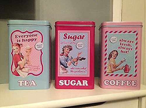 Set of 3 Retro 50's Style Coffee, Tea & Sugar Tin Canisters