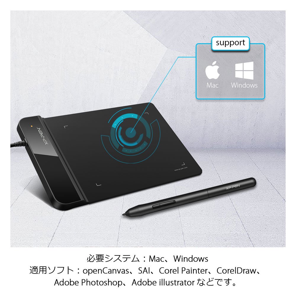 Supported software: SAI, Photoshop, Painter, Clip studio, GIMP etc.