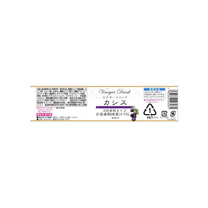 원본상품명: キユピ ビネガドリンク カシス 500ml