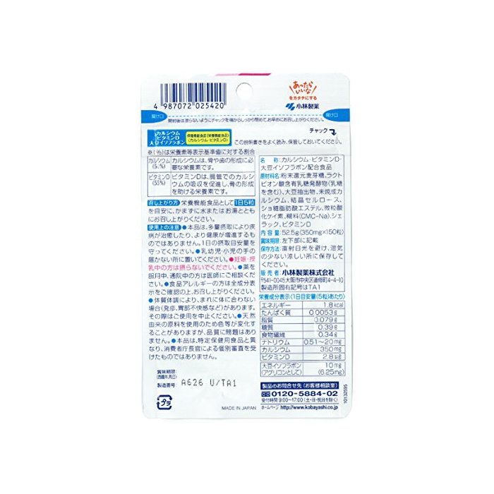 원본상품명: 小林製?の?養補助食品 カルシウム ビタミンD 大豆イソフラボン 約30日分 150粒