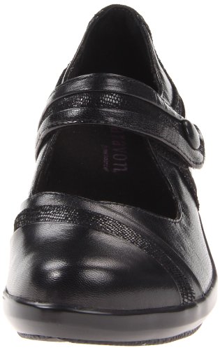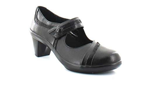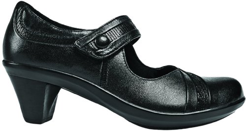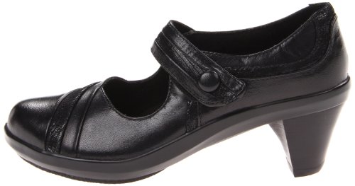 This mary jane is stacked with style, from the 2-inch leawood wrap heel all the way to the fetching sweetheart collar shape. And the pretty leather button detail on the side is an added design detail. Color: Black