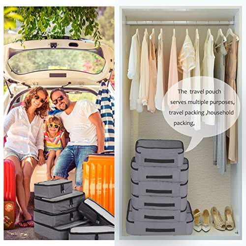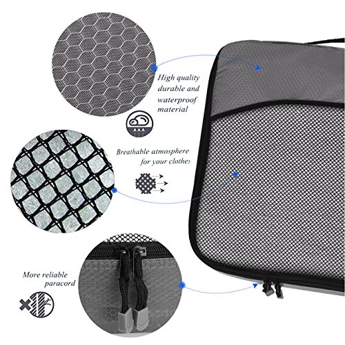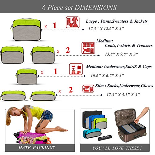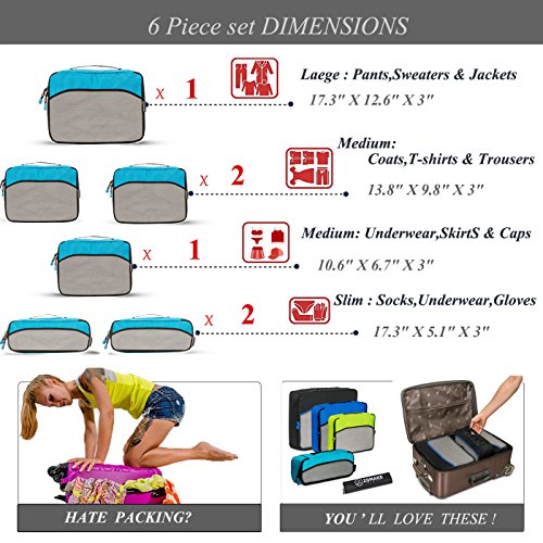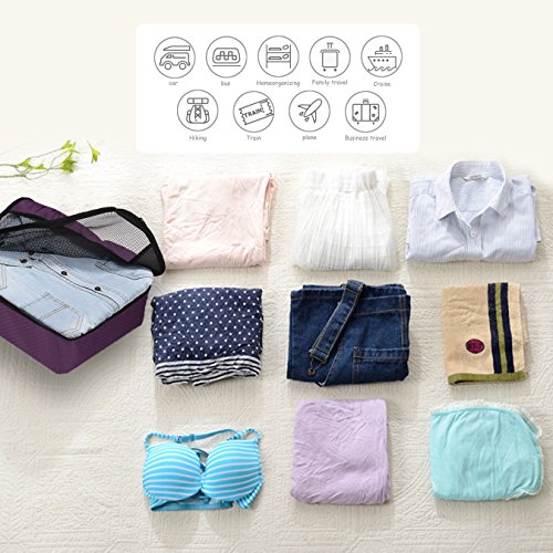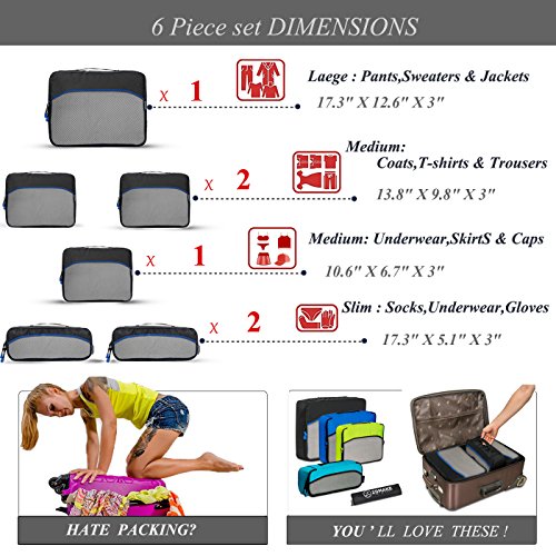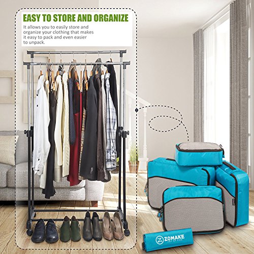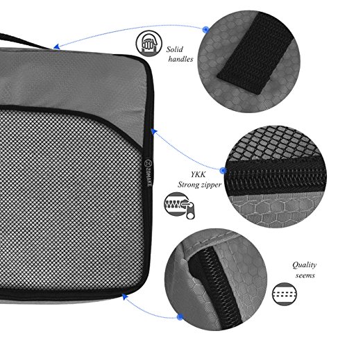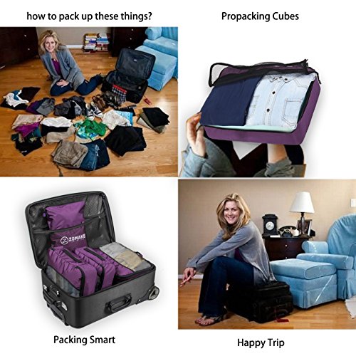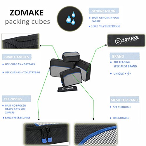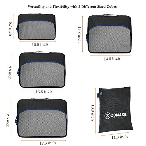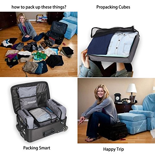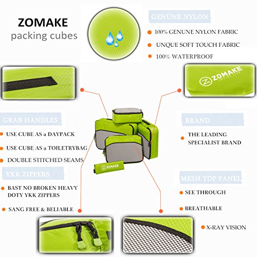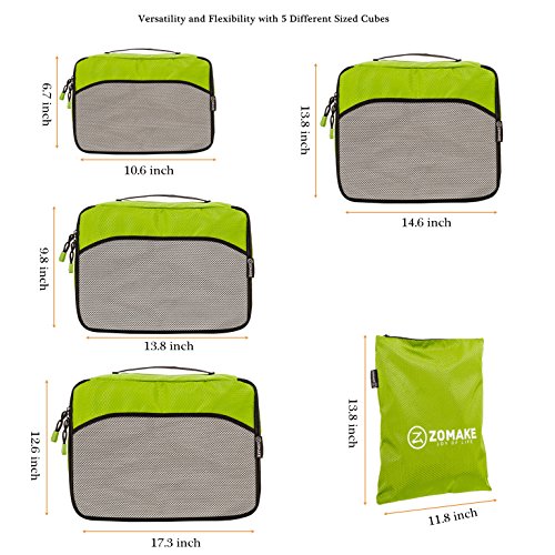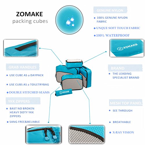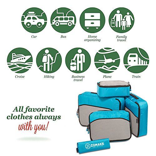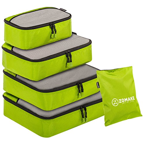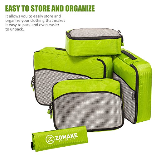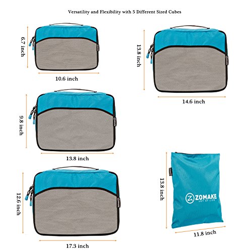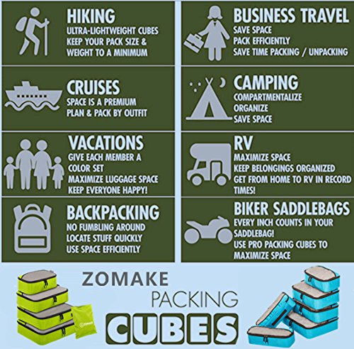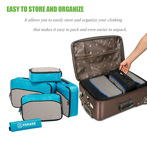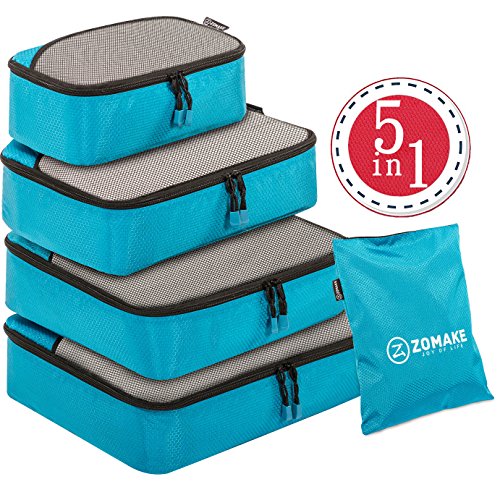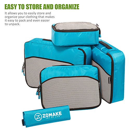 SAY GOOD BYE TO ALL YOUR TRAVEL WOES With ZOMAKE Travel Packing Cubes Value Set For Travel You Are Ready To Neatly Pack, Be Organized And Find Any Item in a moment, Sort And Find Your Things In A Flash. Pack your business attire in one cube, your swimwear in the other, casual clothes in the next, and so on. Be creative and organise things the way you love. Save Your Clothes From Stains, wrinkles and damages. No more stains on your clothes or nasty runs in your pantyhose! These cubes will tuck your clothes safely in your luggage. Pack More In Less Space. Imagine 1 luggage for the whole family. Use one cube for each member and compress them all in one bag. Assign a color for your kids and have fun packing together. Avoid excess baggage charges. Just pick one or two cubes as carry-ons. Unpack Your Things In A Breeze! Pop the cubes out of your luggage and into the hotel closet They make perfect closet organizers in hotels or in your home. Specification Material: Nylon Fabric Material Products Dimensions:Extra Large(17.5" x 12.75" x 4") Large (13.75" x 12.75" x 4") Medium (13.75 x 9.75 x 4) Small (11" x 6.75" x 4") Shoe bag (13.75 x 9.75 x 4) Style: Packing Cubes Description: Choose ZOMAKE packing cubes, it can carry your necessities without stain and chaos. It constructed of premium nylon fabric, features lightweight and pack more in less space. It has 5 pcs in one set, and each is one-color only. You can pack your business attire in one cube, your cosmetic things in the other, casual clothes in the next, and so on. Available in a variety of colors and patterns, this durable and functional packing cubes is perfect for business man, frequent travelers, students, or anyone on the go. 0