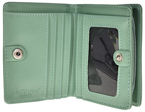 Binding : Apparel Product Description This wonderfully designed wallet features 5 card slots, plus a bonus clear ID holder. The exterior closure features a magnetic snap button, ensuring your wallet stays closed and secure. Interior is complete with a zippered change compartment. This beautiful and unique wallet will keep you looking good and your money secure. Wallet size closed; 4.5 X 3.75 X 0.75 Inches. Famous Shagwear Brand 0