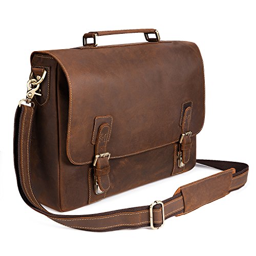 -. Title : Kattee Vintage Genuine Cow Leather Briefcase Messenger Bag, Fit 16" Laptop