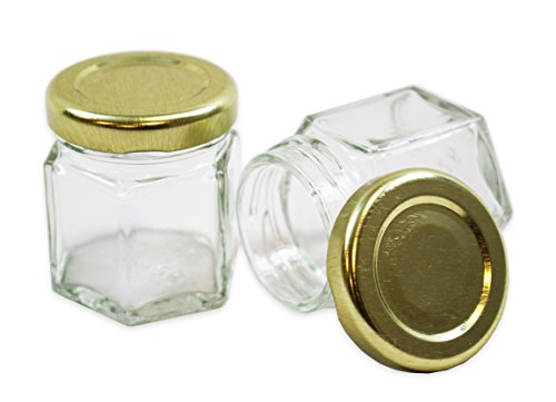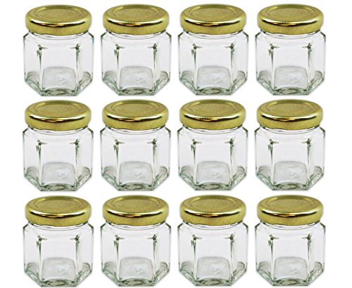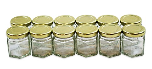 2dayShip 1.5 oz Mini Hexagon Glass Jars for Jam, Honey, Wedding Favors, Shower Favors-12 Pack