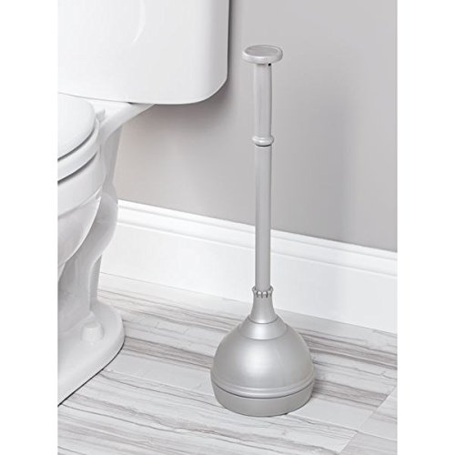 mDesign Traditional Toilet Plunger and Holder for Bathroom Storage - Silver