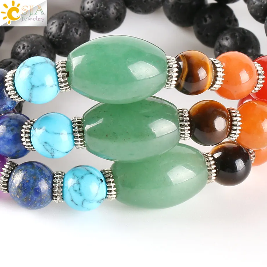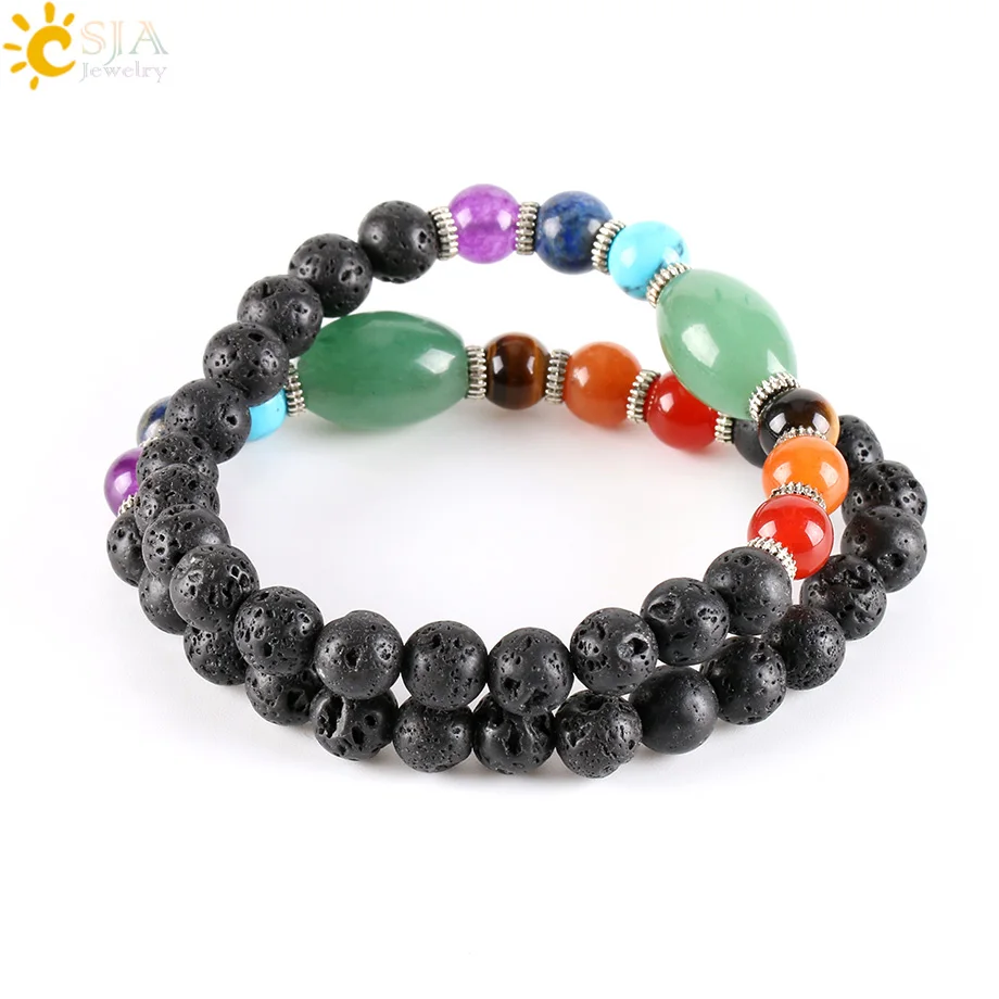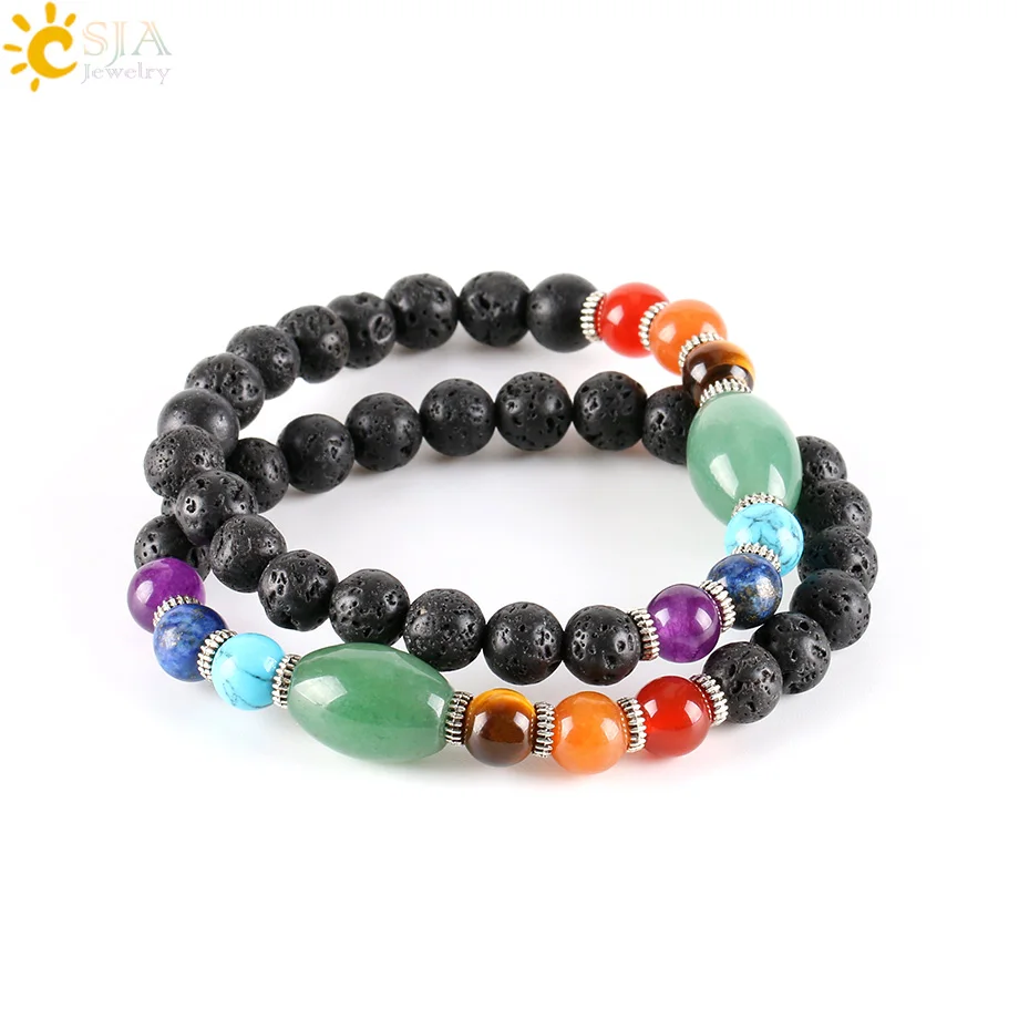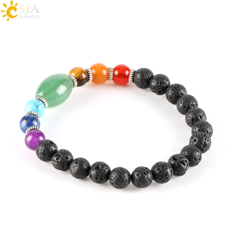 Bracelets Feature:Natural Round Lava Beads Strand Bracelet with 7 Chakra Gem Stone Beads