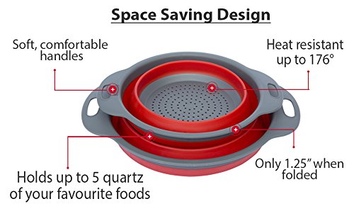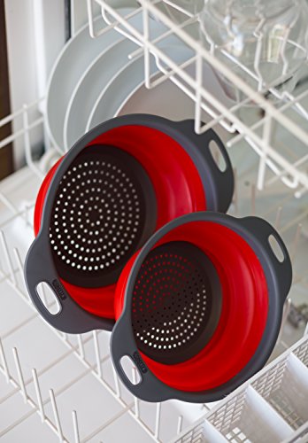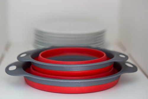 Colander Set - 2 Collapsible Colanders (Strainers) Set By Comfify - Includes 2 Folding Strainers Sizes 8" - 2 Quart and 9.5" - 3 Quart Red and Grey
