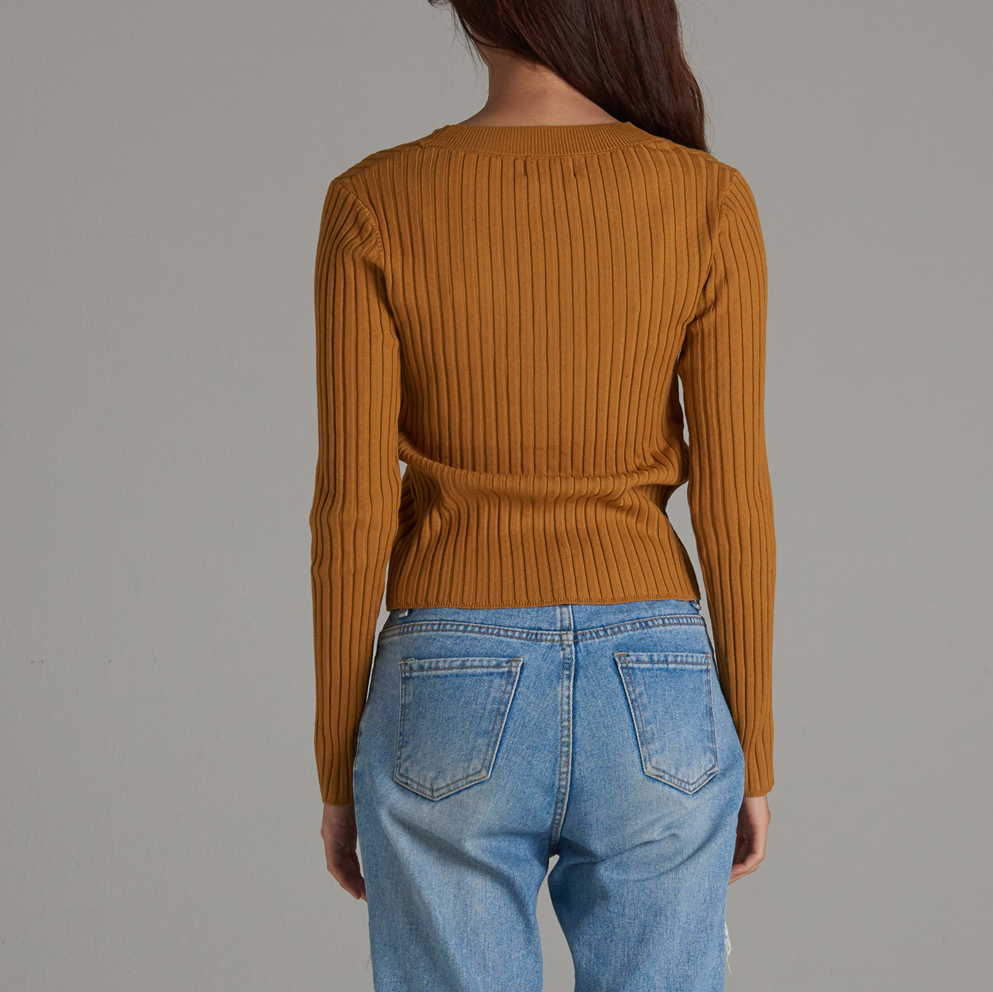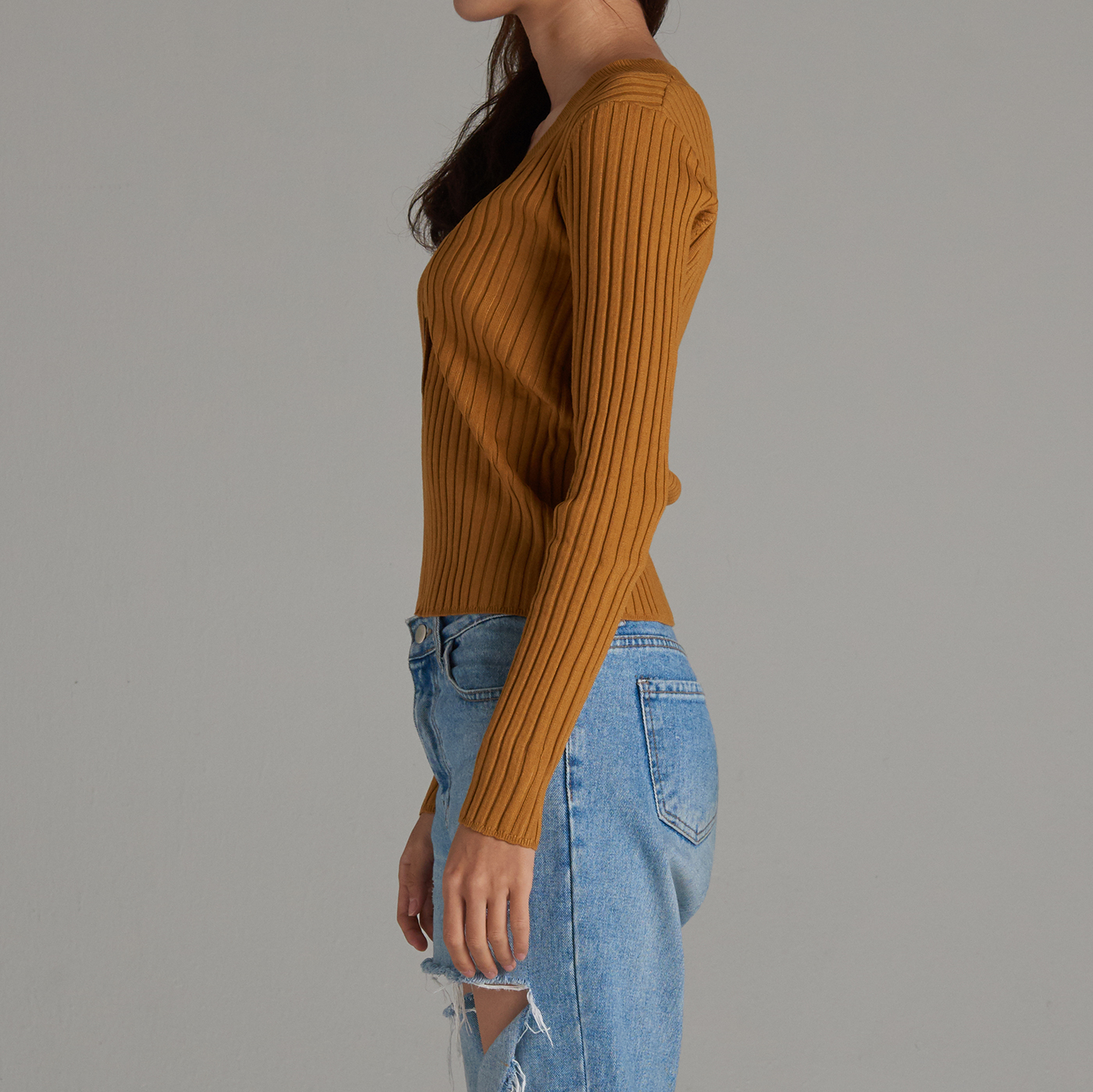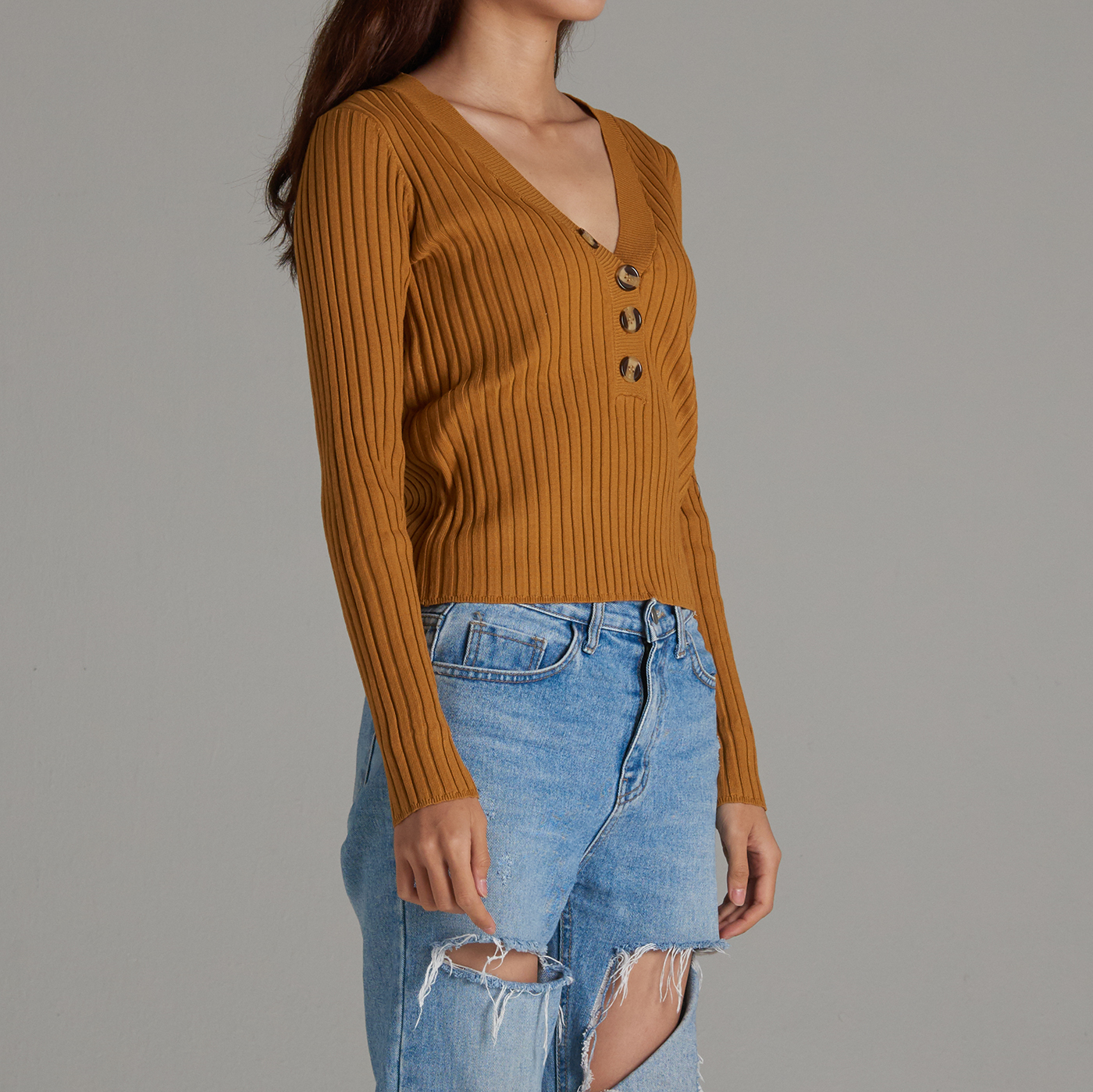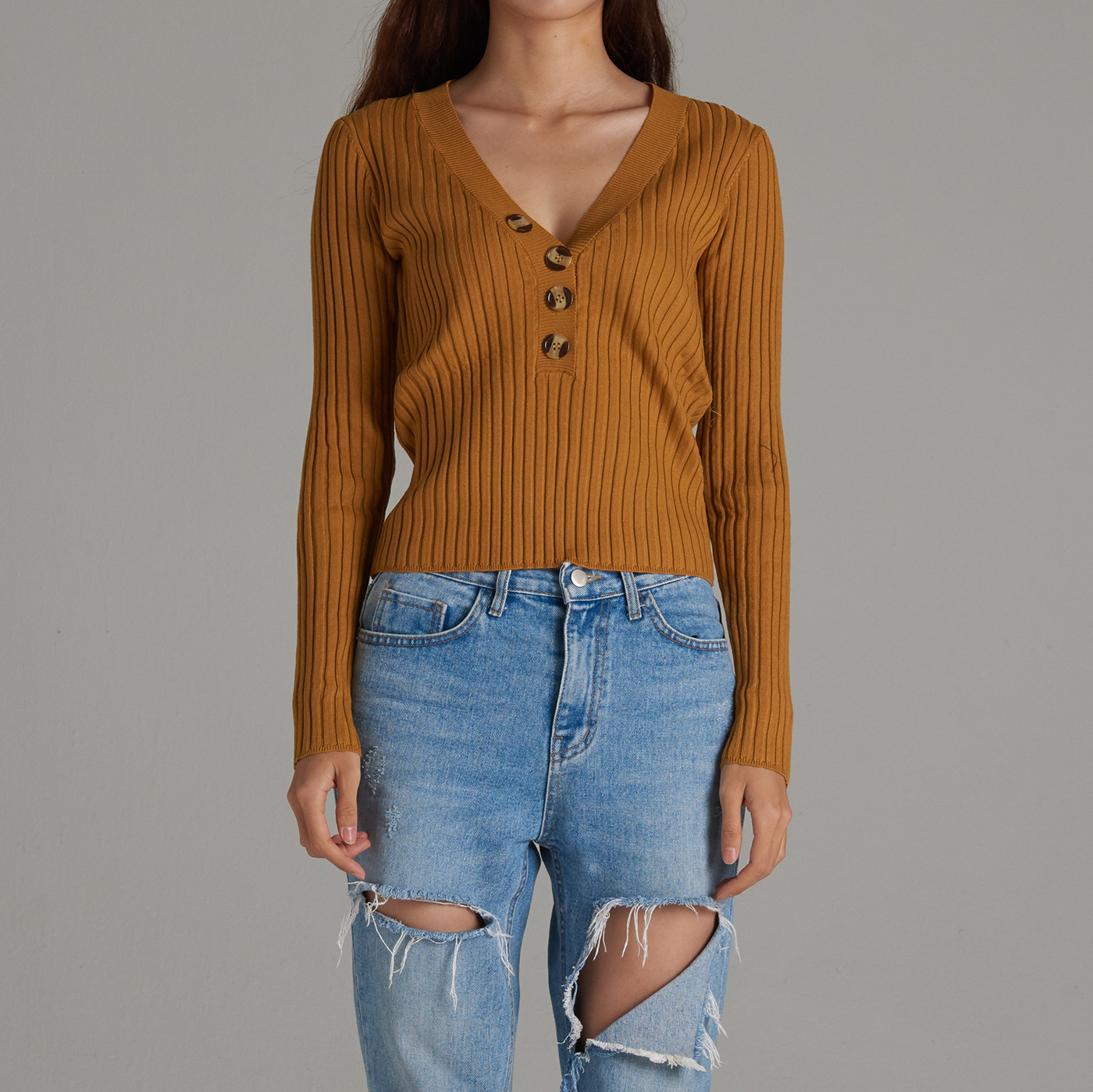 시크한 V라인의 단추 디테일이 고급스런 골지 니트 탑입니다.