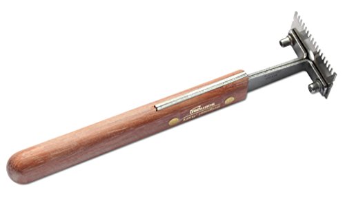 Designed to reduce shedding better than any brush, comb, or rake, this innovative tool works effectively for all shedding breeds of dogs and cats, both long- and short-haired. It addresses the issue of the undercoat, which can become a dense mess of loose, dead hair and the major source of shedding, and the allergies and cleanliness problems that come with it. The revolutionary grooming device utilizes a unique 1-3/4-inch stainless-steel edge that grabs loose undercoat hair and quickly and easily removes it, without damaging the topcoat. It actually brings out the pet's natural oils, leaving a shiny and healthy topcoat. The pet will enjoy the feeling the de-shedding tool provides, and caretakers will appreciate the results.