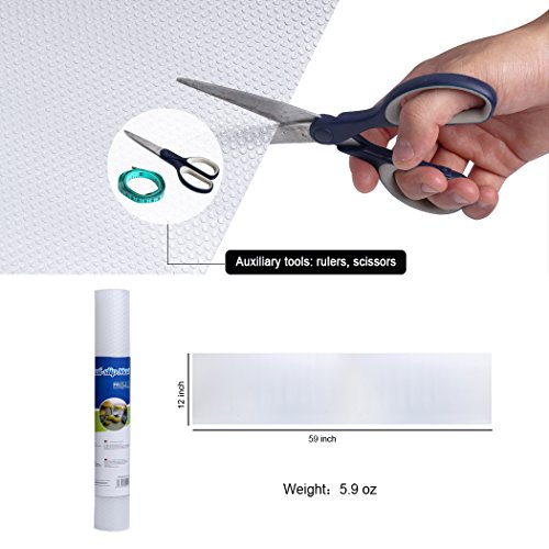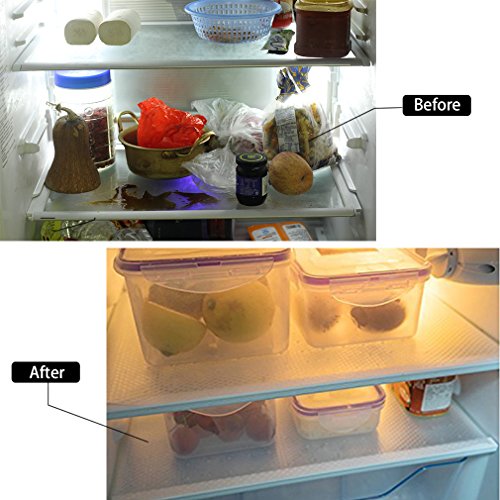 ✪Cuts to any size or shape to fit inside your fridge or for desired fit, dress up your heavy duty book shelves, counter top, dining table or even desk in seconds.(Please cut it into exactly the required size to fit the shelf or it may slip or move when using.)
