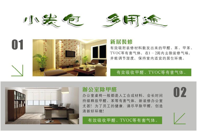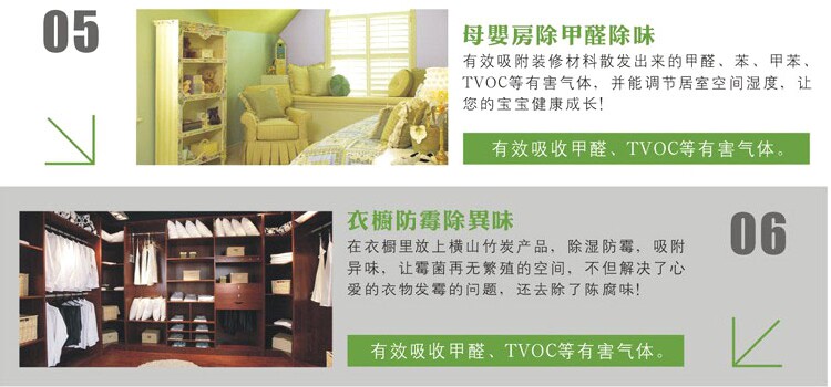 Bamboo charcoal fine porous surface area, if the ambient humidity can absorb water if the surrounding environment is dry, you can release the water. The advantages of this function is particularly prominent in China's coastal city and inland city.