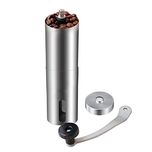 STAINLESS STEEL HANDLE: feel comfortable, easy grinding. Stainless steel coffee grinder with a Unique Screw which is thick and firm. The oblique curvature is ergonomic. Grinding speed doubled, more effort