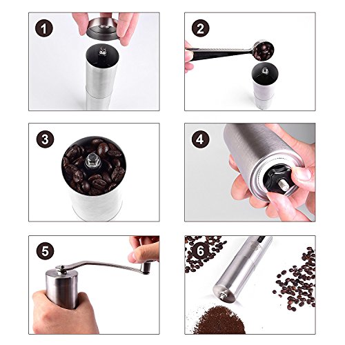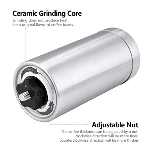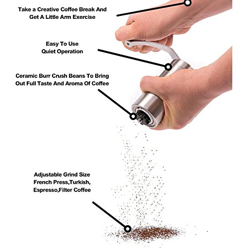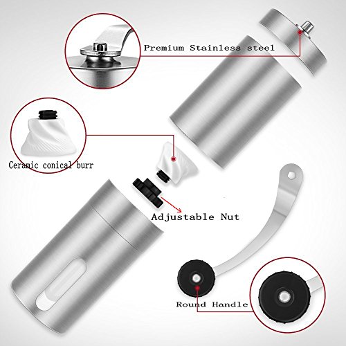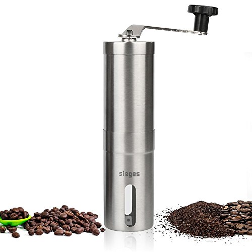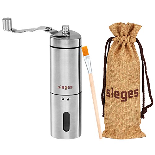 SIEGES Manual Coffee Grinder includes: --Adjustable Ceramic Burr Grinder