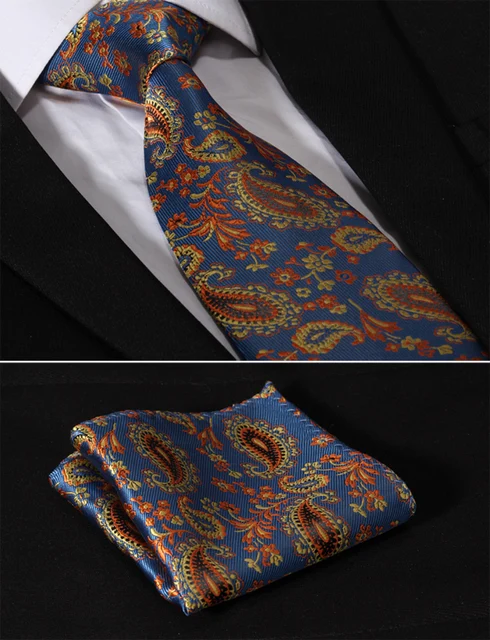 | [해외]TF3007N8 블루 오렌지 페이즐리 꽃 3.4 "실크 많은 웨딩 Gravata 자카드 넥타이 망 넥타이 포켓 스퀘어 손수건 세트 정장 |
