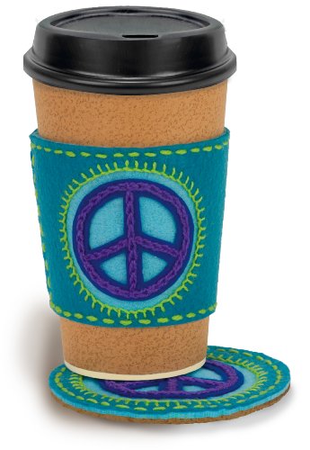 Dimensions Needlecrafts Handmade Embroidery, Peace Sign Coffee Cozy and Coaster