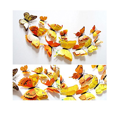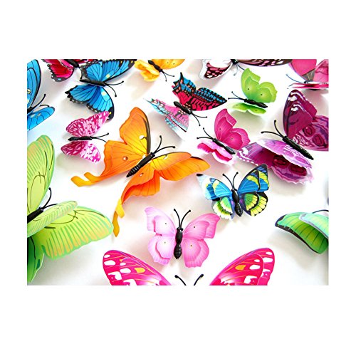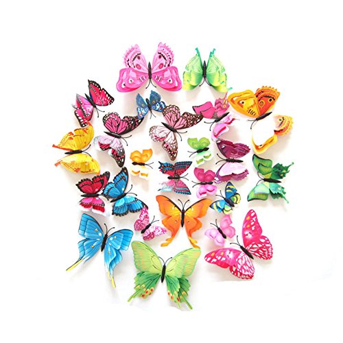 24 Pcs 3D Butterfly Stickers Double Wings with Pin Art Curtain Decoration (Pin)