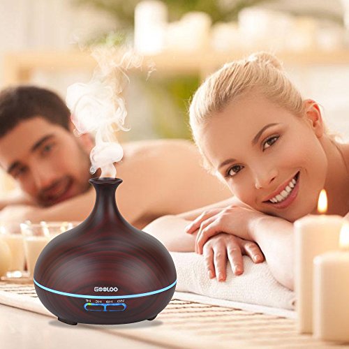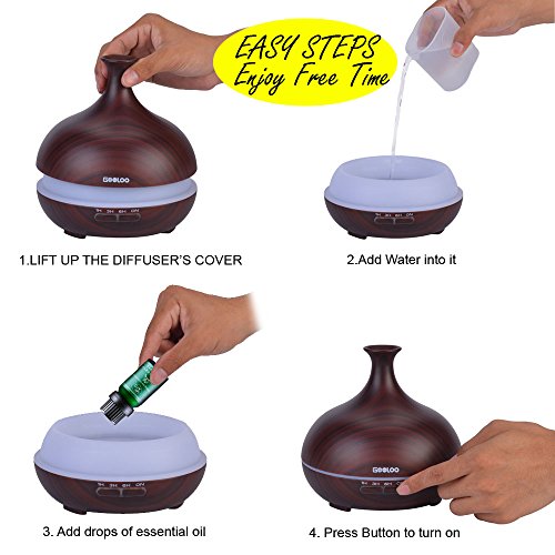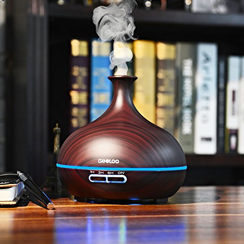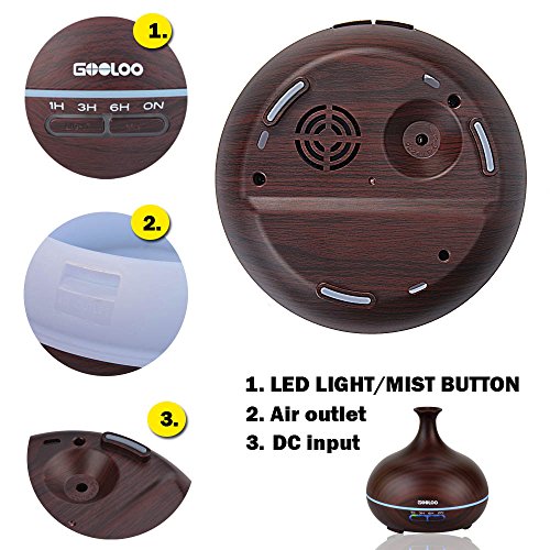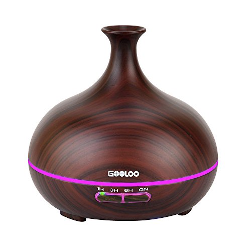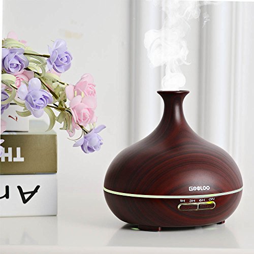 Aromatherapy Essential Oil Diffuser, GOOLOO 300ml Wood Grain Ultra Quiet Ultrasonic Air Aroma Cool Mist Humidifier with 7 Color Night Light, 4 Timer Settings, Waterless Auto Shut-off