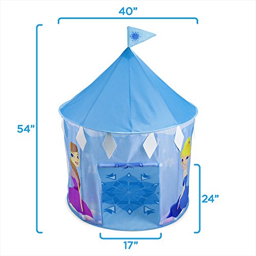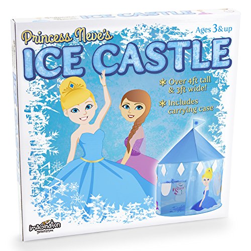 Studio : Imagination Generation Publisher : Imagination Generation Binding : Toy Product Description Come play with Princess Neve, her friend Ravi, and Ravi's reindeer Aiden! Princess Neve's Ice Castle magically grows from flat to over 4 feet tall and 3 feet wide--just the right size to fit both your little princess and her budding imagination. This play tent is her very own space for dress-up or hide-and-seek. It's also a wonderful, private place to read. Why You'll Love It: Made with water-resistant, tear-resistant nylon, Neve's castle is great for both indoor and outdoor play, and easily cleans with a damp cloth. Colorful flags and detailed wintry designs decorate the walls, roof, even the floor! The tent itself assembles in minutes and is supported by durable spring-steel rods that easily snap into place. Neve's castle stands tall at just over 4 feet, but collapses down nearly flat and fits into an included 17" carrying case for easy, convenient storage and travel. So take it to a friend's house, to the park, to a slumber party, to day care... anywhere! 0