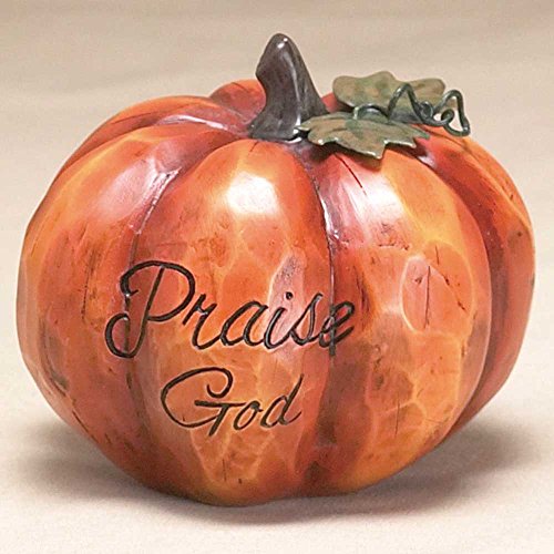 Praise God Pumpkin Orange 2 x 2 Resin Stone Harvest Table Top Figurine Decoration