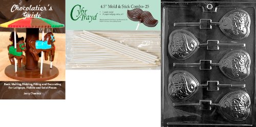 Cybrtrayd 45St25Bk-V035 'Be My Valentine Lolly' Valentine Chocolate Candy Mold with 25 4.5-Inch Lollipop Sticks and Chocolatier's Guide