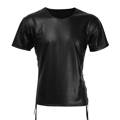 -. Title : iiniim Men's Wet Look Lace-up Short Sleeve T-shirt Faux Leather Clubwear Undershirt Tops