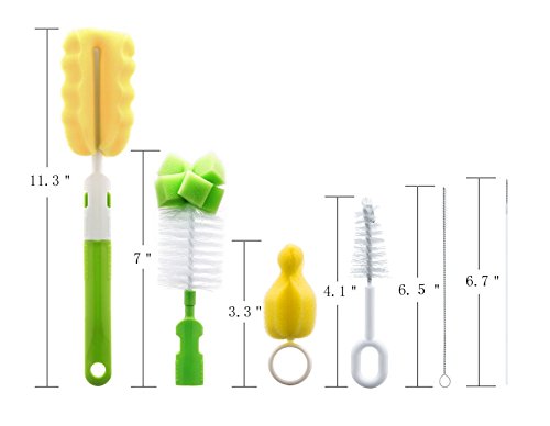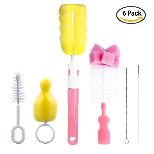 -. Feature : VERSATILE: Set of 6 Sizes, easy to assemble and take apart. Bottle brush works on all major brands regular size bottles. Nipple & straw brush is perfect for nipples, smaller bottles, pump parts and other accessories / SAFETY: Imported food grade PP material, BPA free. With high density sponge, soft brush to prevent injury body, more completely clean / EASY TO CLEAN: Special-design sponge cleans the entire internal surface of bottles, including hard-to-reach corners and bottoms. Two types of nipple brushes to get into tight spaces and clean all the bacteria out / MATERIAL: Eco-friendly polypropylene ( PP) handle with non-slip textured grip. Nanotech sponge lasts longer than regular bottle sponge, and is easier to dry. It does not scratch bottles and nipple / GIFT IDEAS: Great gift for infant starter. A lovely and functional household novelty